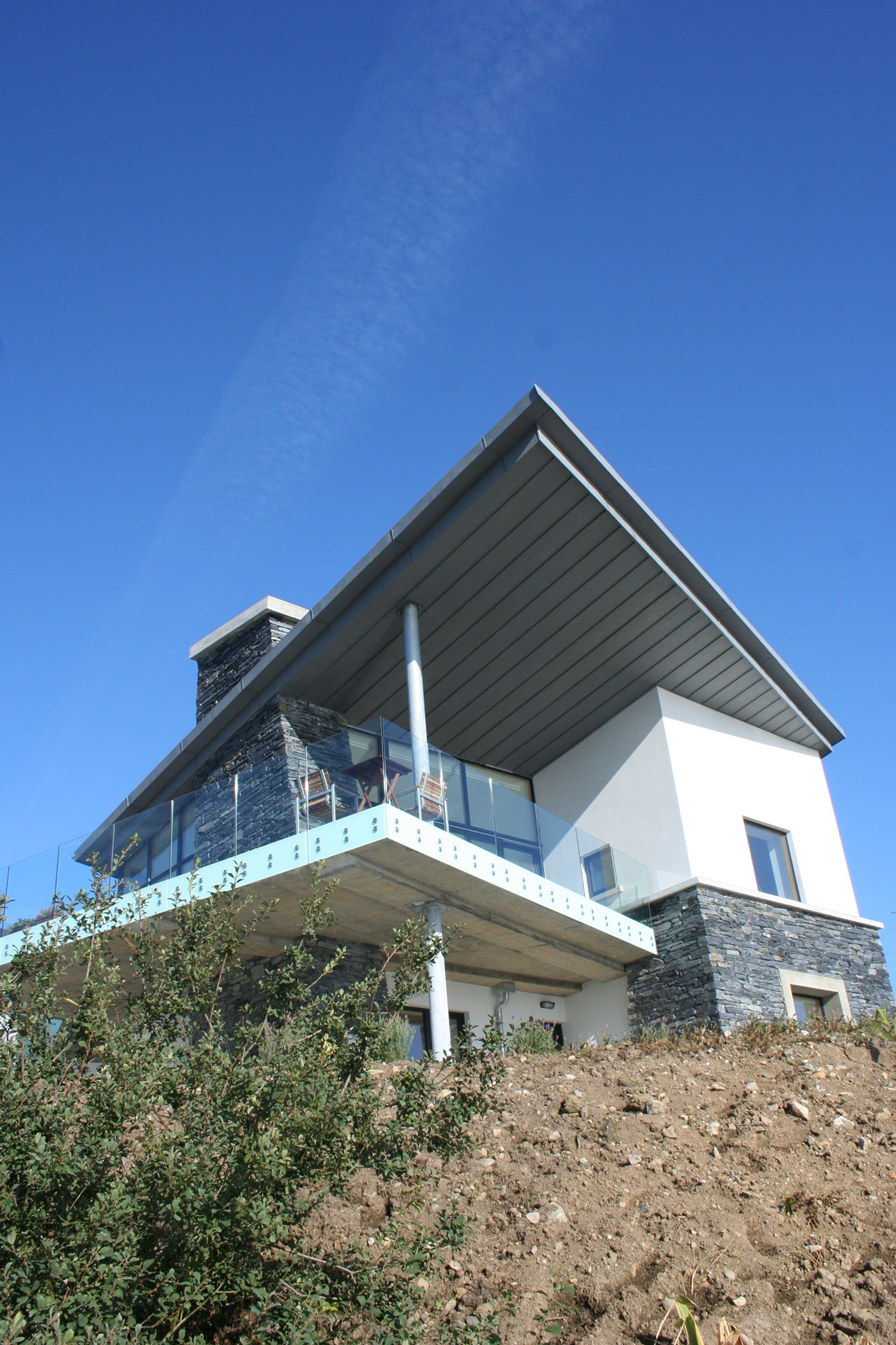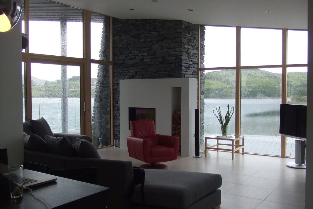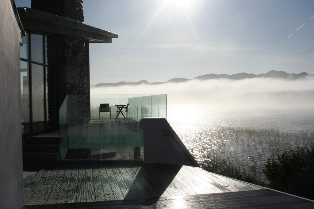 This project undertakes a sensitive yet bold transformation of a 1960s bungalow, introducing a contemporary split-level extension that maximises both spatial efficiency and the site’s prime Lough side location. The “upside-down” living concept relocates primary living areas to the upper level, ensuring uninterrupted views of Kindrum Lough while maintaining private sleeping quarters below.